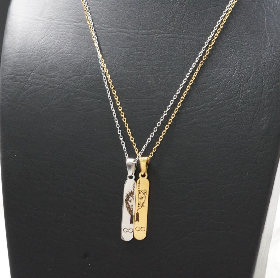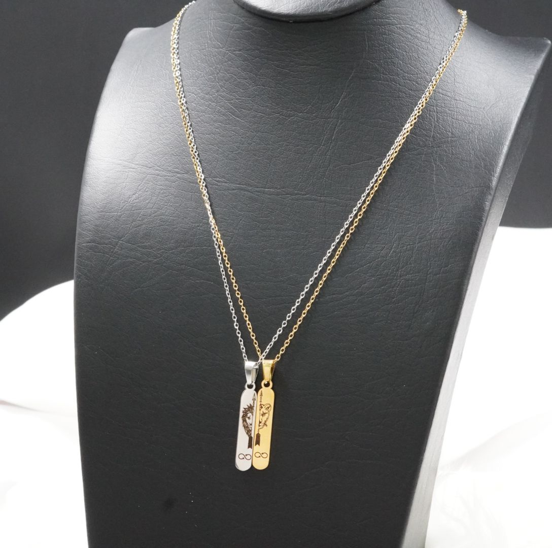 Este dúo de cadenas, una en tono dorado y otra en plateado, sostiene dijes grabados con la figura del león y la leona: representación de poder, lealtad y amor inquebrantable. El detalle del infinito en la base de cada dije recuerda que lo verdadero nunca termina.